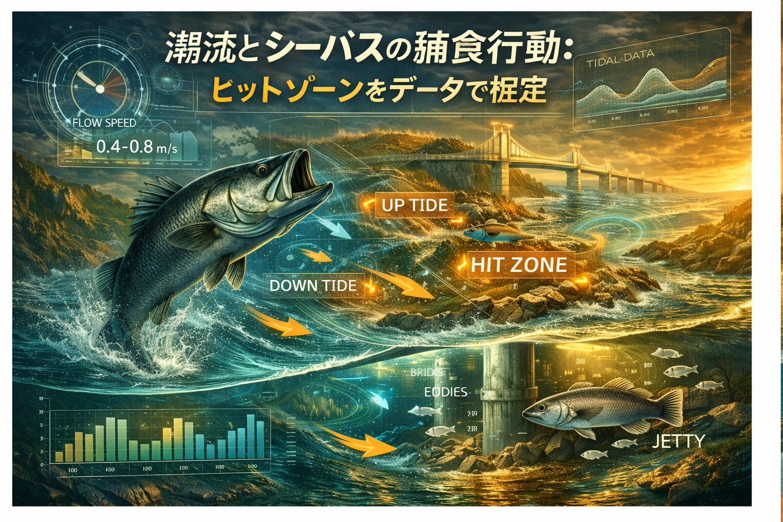 この記事では、潮流データと実際の釣果データを照らし合わせ、シーバスが最も活発に捕食する条件とエリアを科学的に探っていきます。